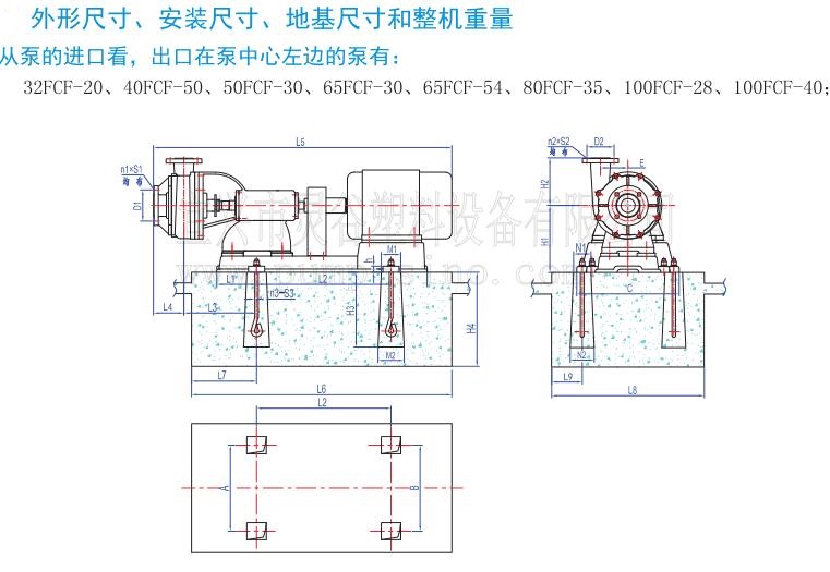一、概述 FCF系列氟塑料襯塑泵是一種單級、單吸離心泵,其泵體及前后泵蓋由金屬外殼內襯氟塑料(F46)、葉輪由金屬嵌件外包氟塑料(F46)壓制成型,軸封則采用機械密封和動力密封等多種密封形式。該泵具有結構簡單、耐腐蝕性能強、耐溫高等特點。主要用于化工、冶煉、化纖、鈦白、稀土、稀有金屬、農藥、磷復肥、檸檬酸、無機鹽、造紙、環保、食品及污水處理等行業,是輸送清潔或含有少量顆粒的強酸、強堿及有機溶劑等強腐蝕介質的理想設備。 二、型號說明