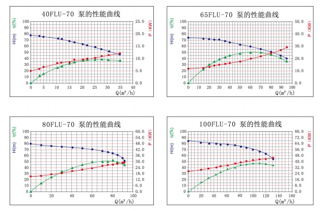 ◆從泵的進(jìn)口來看,出口在泵中心左邊的泵有:40FLU-70,65FLU-70,80FLU-70,100FLU-70。
