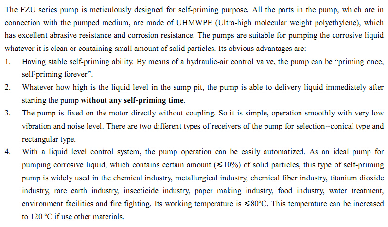 | FZU engineering plastic vertical self-priming pump | |